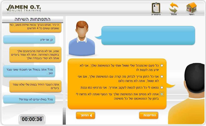 Amen-O.T. היא מערכת סימולציות המאפשרת ללומד להתנסות מעמדת העבודה במגוון מצבים להם הוא נדרש בתפקידו, כגון שיחות שירות, ניהול או מכירות.