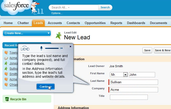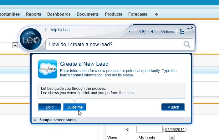 LEO מלווה את המשתמש בזמן עבודה על מערכת מידע, באמצעות הנחיות "צעד אחר צעד" או מבצע עבורו את הפעולה באופן אוטומטי. כל זאת במהירות ויעילות על כל סוגי היישומים וללא צורך באינטגרציה עם המערכות של הארגון.